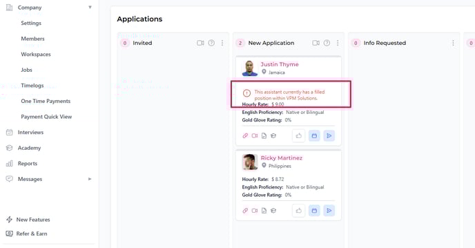 You can also view in the Application Tracking System whether an applicant is currently contracted with another company.